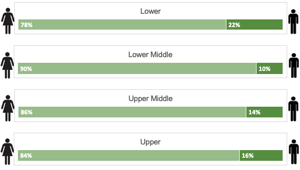 Our workforce consists of 85% women and 15% men. In the last 12 months, the proportion of male employees across the lower quartile has increased from 16% to 21%. This demonstrates that more men are entering the industry which suggests that the gender pay gap is likely to reduce in the future. Notwithstanding this, we are still committed to increasing the number of men employed by the organisation and ensuring that we have an appropriate mix of genders occupying roles of all types and at all levels.