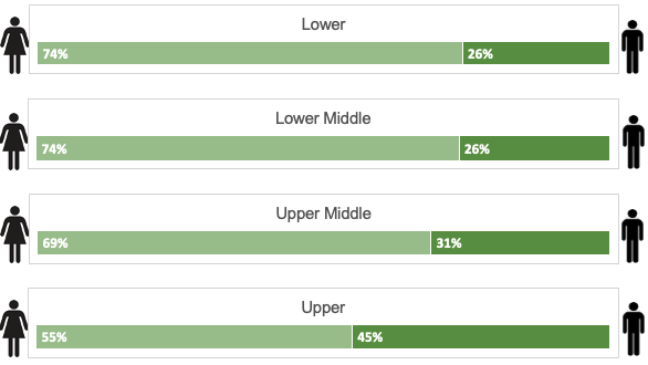 Our workforce consists of 68% women and 32% men and as is commonplace within our industry, the majority of our workforce is female. Care giving roles are primarily undertaken by women throughout the industry and the organisation which generally attract lower rates of remuneration. It is also the case that as an organisation we employ bank workers who work ad hoc shifts and irregular hours and are routinely women. Notwithstanding this, there is still a majority proportion of women occupying roles within the upper quartile which shows our commitment to internal progression.